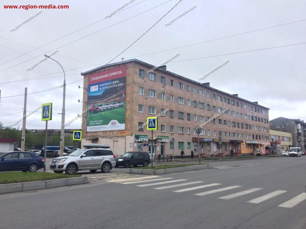 Подготовка маркетинговых материалов и размещение крупноформатных полотен на жилых, административных, производственных объектах − предложения РА «Регион Медиа Групп». Мы успешно продвигаем товары и услуги наших клиентов, создавая уникальные решения. Пример нашей работы − реклама на зданиях в Мурманске Ул. Лобова, 1.