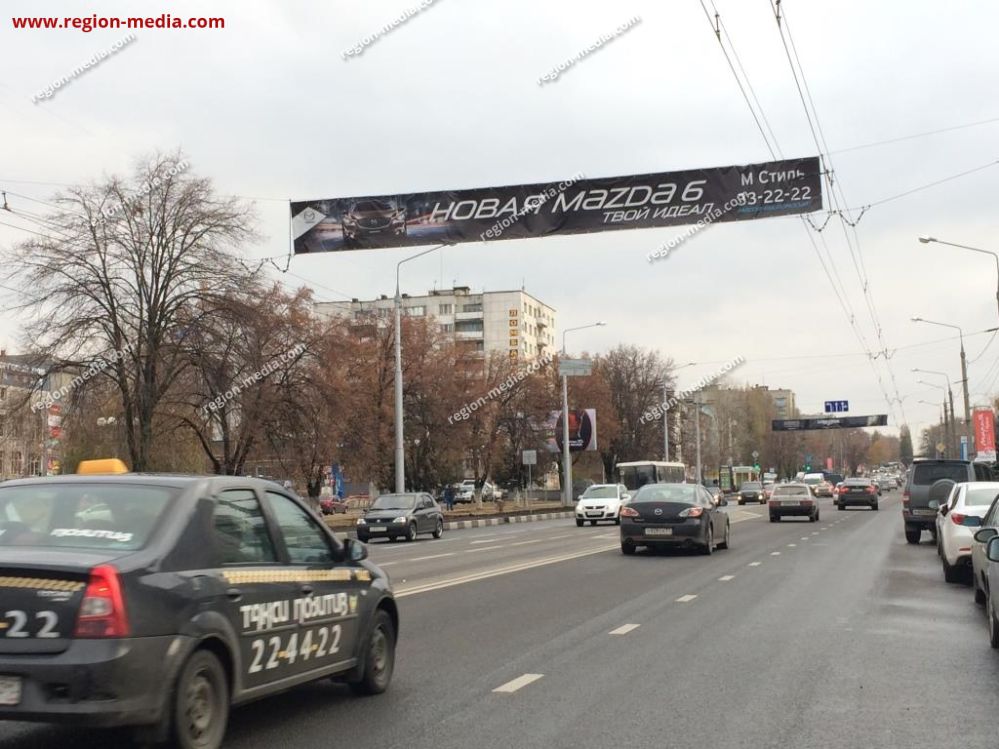 Растяжка крупноформатная, её несложно заметить пешеходам, водителям, пассажирам. За счёт этого обеспечен широкий охват потенциальных клиентов. Конструкция гармонично вписана в городской пейзаж, нет ощущения навязывания продукта, что положительно сказывается на уровне лояльности ЦА к предложению.
