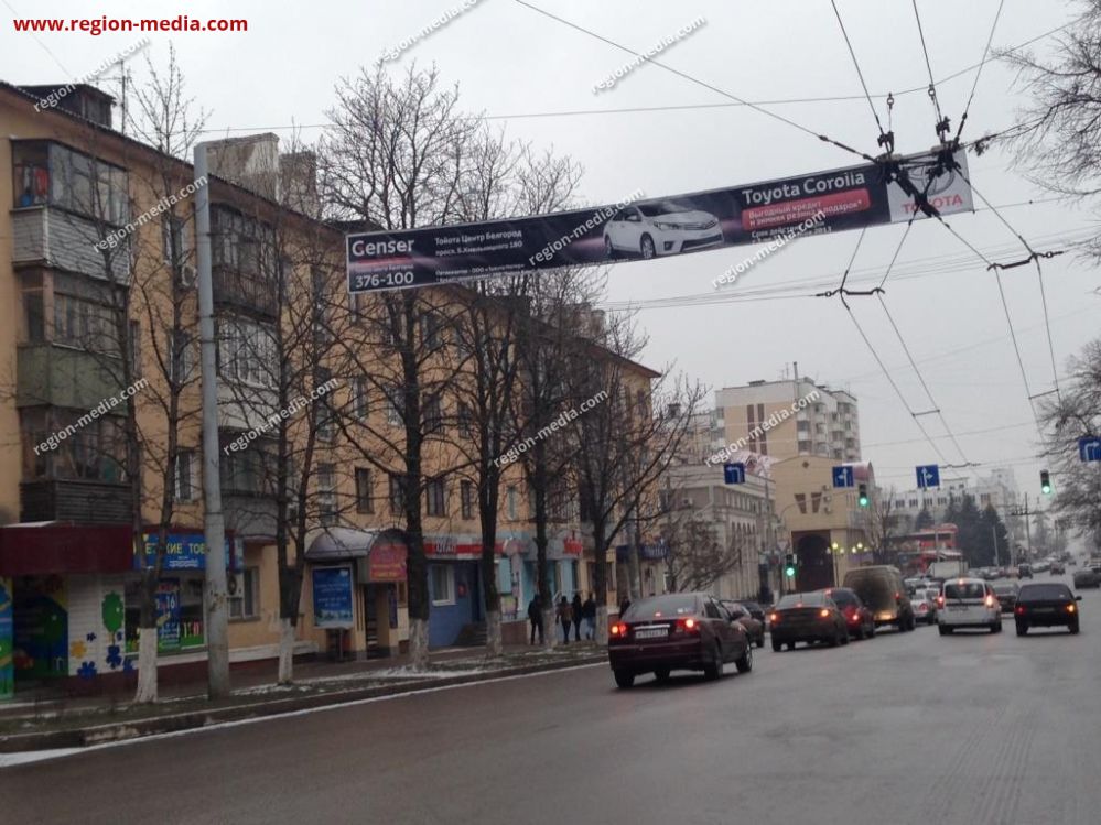 Реклама на перетяжках в Белгороде Ул. Преображенская - МТС− один из маркетинговых инструментов, который специалисты РА «Регион Медиа Групп» использовали для продвижения бренда клиента. Наши специалисты разработали уникальный макет, продумали расположение графической и текстовой информации на нём, подобрали подходящие цвета с учётом их воздействия на целевую аудиторию.