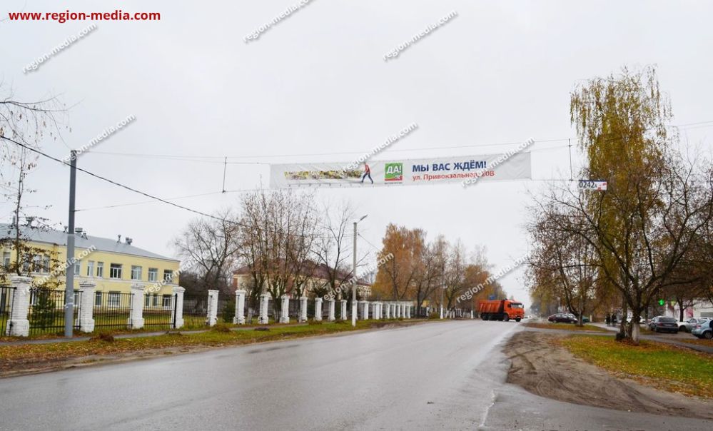 Растяжка крупноформатная, её несложно заметить пешеходам, водителям, пассажирам. За счёт этого обеспечен широкий охват потенциальных клиентов. Конструкция гармонично вписана в городской пейзаж, нет ощущения навязывания продукта, что положительно сказывается на уровне лояльности ЦА к предложению.