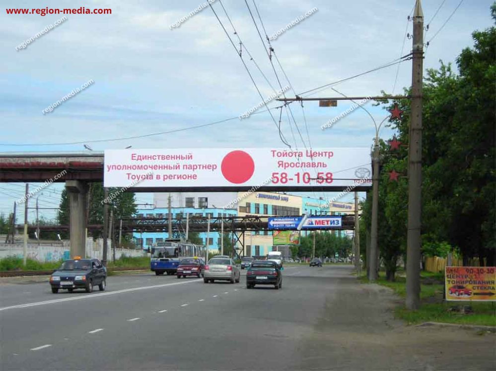РА «Регион Медиа Групп» предлагает услуги по разработке и размещению наружных крупноформатных конструкций для успешного продвижения товаров и услуг. Лучшим подтверждением эффективности нашей работы являются реализованные проекты. В качестве примера приведём рекламу на арках в Ярославле Октября пр-кт д.85 (Шиноремонтный завод).