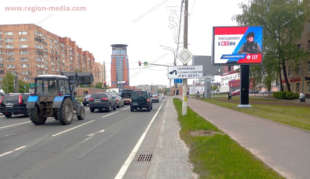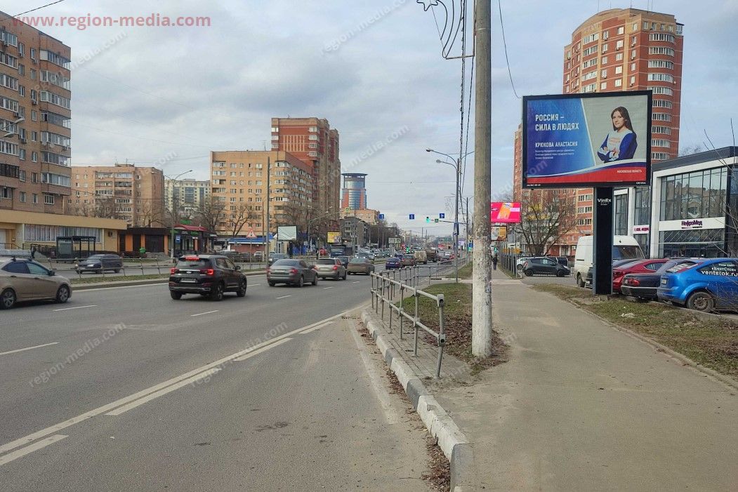 Рекламные ситиборды в Щелково разделяют на односторонние, двухсторонние (на одной стороне не осуществляется смена слайдов) и настенные динамические (крепление осуществляется на стене здания – одна рекламная плоскость).