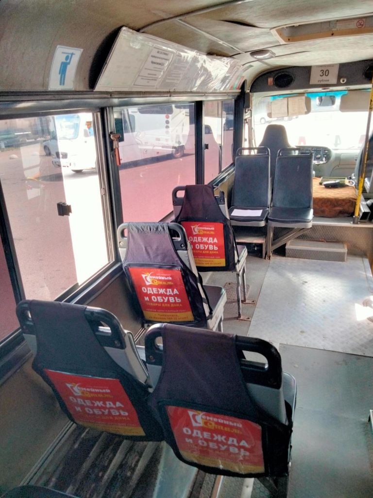 Стикеры и постеры в транспорте в Альметьевске . Они размещаются на самых просматриваемых поверхностях: над окнами, на скосах крыши, на перегородках за водителем и на самих окнах (с использованием специальной перфорированной плёнки, не мешающей обзору).