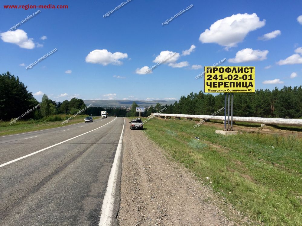Реклама на щитах 3х6 в Абакане Трасса Кызыл Минусинск Абакан въезд в г. Минусинск р-н кафе Полянка А − пример успешной работы специалистов РА «Регион Медиа Групп». Наружная конструкция хорошо видна с разных ракурсов, заметна издалека, привлекает внимание пешеходов, водителей, пассажиров общественного транспорта.