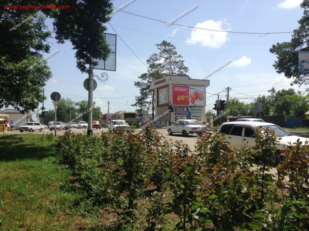 Реклама на щитах 3х6 в Абинске ул. Мира и Советов (напротив Ц.Р.Б., и Казачий рынок) сторона А − пример успешной работы специалистов РА «Регион Медиа Групп». Наружная конструкция хорошо видна с разных ракурсов, заметна издалека, привлекает внимание пешеходов, водителей, пассажиров общественного транспорта.