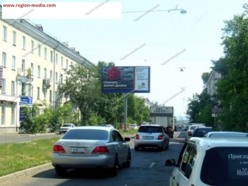 Реклама на щитах 3х6 в Ангарске Горького (суд) А − пример успешной работы специалистов РА «Регион Медиа Групп». Наружная конструкция хорошо видна с разных ракурсов, заметна издалека, привлекает внимание пешеходов, водителей, пассажиров общественного транспорта.