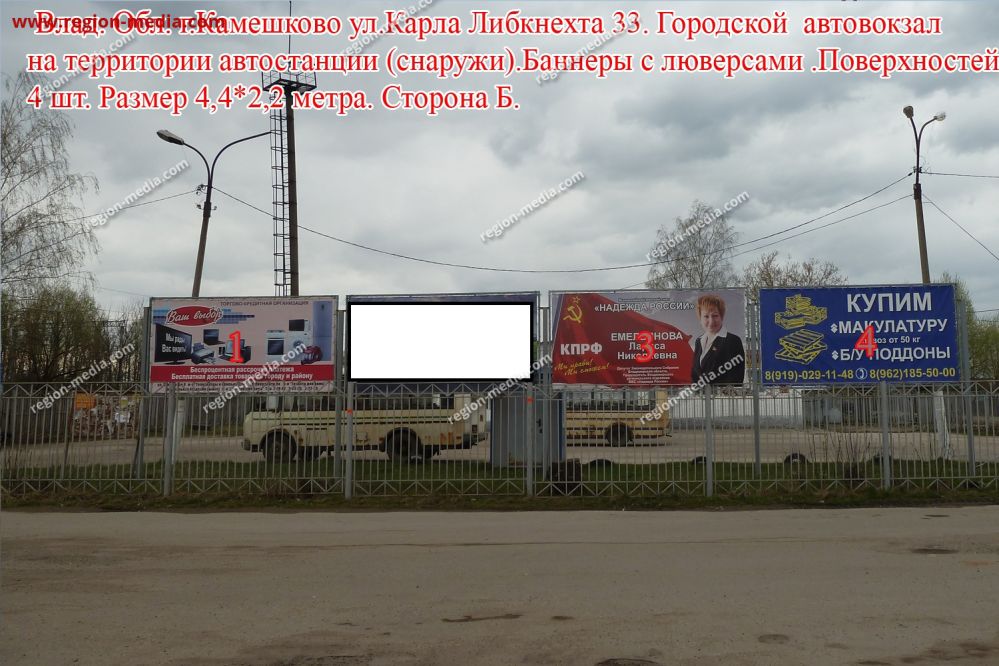 Реклама на щитах 3х6 в Камешково Камешково ст Б − пример успешной работы специалистов РА «Регион Медиа Групп». Наружная конструкция хорошо видна с разных ракурсов, заметна издалека, привлекает внимание пешеходов, водителей, пассажиров общественного транспорта.