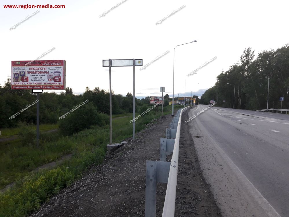 Реклама на щитах 3х6 в Краснокамске ул.Шоссейная (въездвыезд АЗС) Б − пример успешной работы специалистов РА «Регион Медиа Групп». Наружная конструкция хорошо видна с разных ракурсов, заметна издалека, привлекает внимание пешеходов, водителей, пассажиров общественного транспорта.