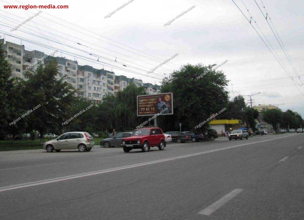 Реклама на щитах 3х6 в Нальчике Шогенцукова 40 Б − пример успешной работы специалистов РА «Регион Медиа Групп». Наружная конструкция хорошо видна с разных ракурсов, заметна издалека, привлекает внимание пешеходов, водителей, пассажиров общественного транспорта.
