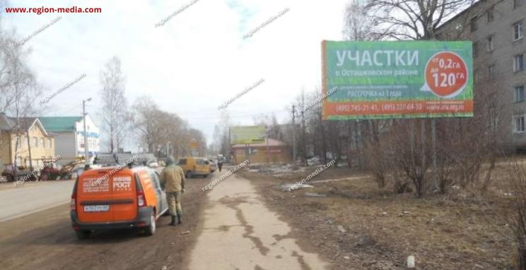 Реклама на щитах 3х6 в Осташкове ул. Загородная A − пример успешной работы специалистов РА «Регион Медиа Групп». Наружная конструкция хорошо видна с разных ракурсов, заметна издалека, привлекает внимание пешеходов, водителей, пассажиров общественного транспорта.