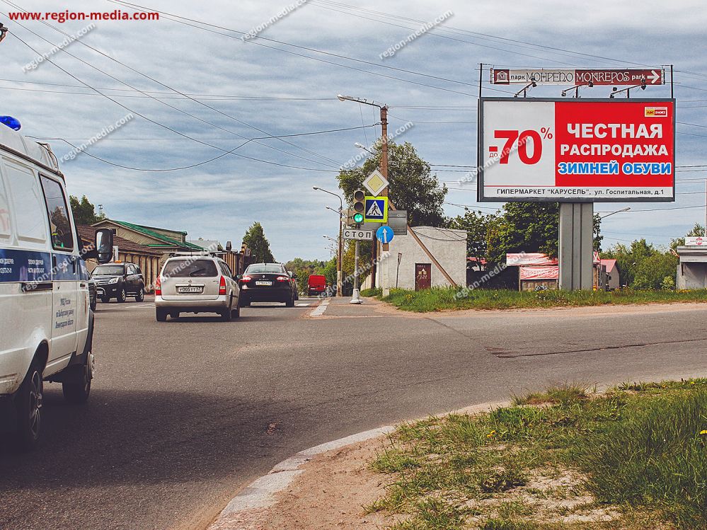 Реклама на щитах 3х6 в Выборге г. Выборг, ул. Островнаяул. Батальонная (треугольный разделительный газон) А − пример успешной работы специалистов РА «Регион Медиа Групп». Наружная конструкция хорошо видна с разных ракурсов, заметна издалека, привлекает внимание пешеходов, водителей, пассажиров общественного транспорта.