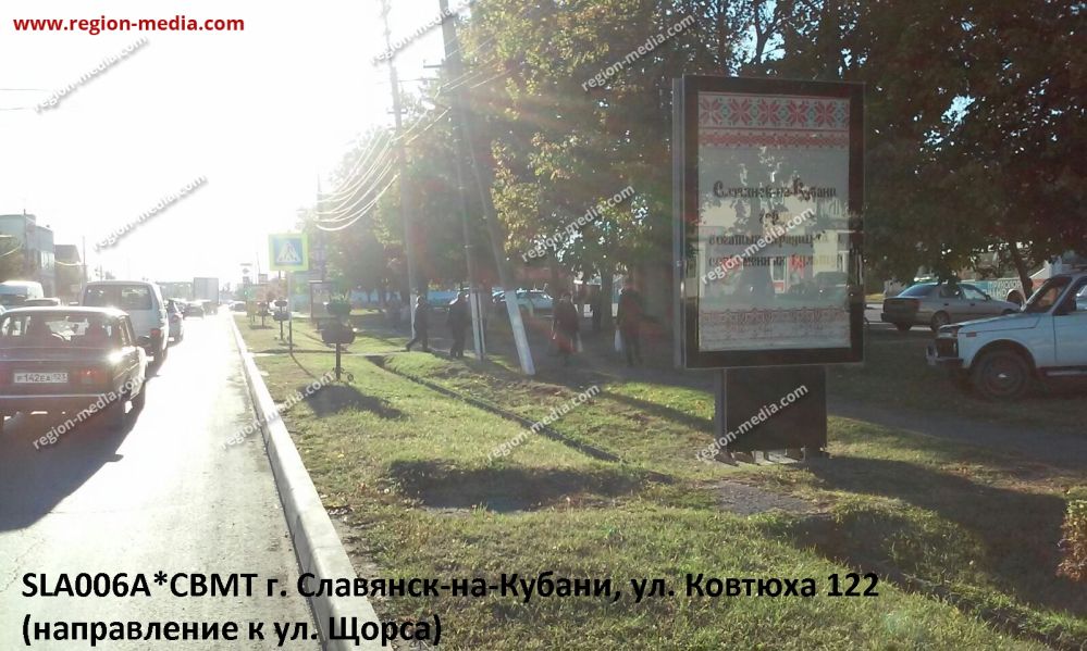 Продвижение товаров и услуг путём размещения информации на компактных уличных конструкциях − популярный и эффективный маркетинговый ход. Анализ проектов РА «Регион Медиа Групп» позволяет сказать, что использование щитов 1,2х1,8 метра даёт быстрое увеличение объёма заказов. Практическое подтверждение − реклама на сити-форматах в Славянске-на-Кубани ул. Ковтюха, 122 ( Направление к ул. Щорса) А.