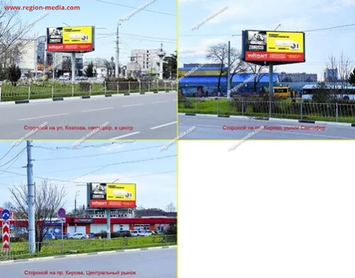 Одним из направлений работы сотрудников РА «Регион Медиа Групп» является подготовка и демонстрация контента на современных видеоэкранах. Он может быть представлен клипом, текстом, анимационным роликом и т. д. В качестве примера нашей работы приведём рекламу на видеоэкранах в Симферополе Центральный рынок (3 экрана).