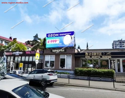 Одним из направлений работы сотрудников РА «Регион Медиа Групп» является подготовка и демонстрация контента на современных видеоэкранах. Он может быть представлен клипом, текстом, анимационным роликом и т. д. В качестве примера нашей работы приведём рекламу на видеоэкранах в Сочи Чебрикова, 38а.