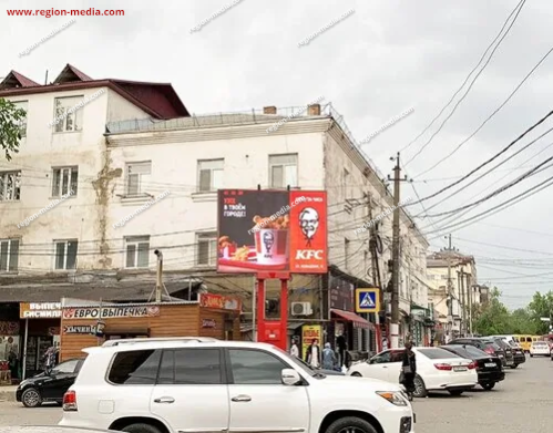 Одним из направлений работы сотрудников РА «Регион Медиа Групп» является подготовка и демонстрация контента на современных видеоэкранах. Он может быть представлен клипом, текстом, анимационным роликом и т. д. В качестве примера нашей работы приведём рекламу на видеоэкранах в Хасавюрте Тотурбиева - Абубакарова А.