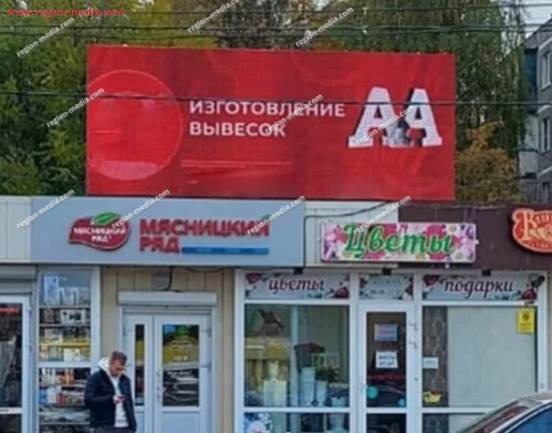 Одним из направлений работы сотрудников РА «Регион Медиа Групп» является подготовка и демонстрация контента на современных видеоэкранах. Он может быть представлен клипом, текстом, анимационным роликом и т. д. В качестве примера нашей работы приведём рекламу на видеоэкранах в Ивантеевке Победы, 32.