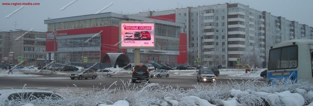 Одним из направлений работы сотрудников РА «Регион Медиа Групп» является подготовка и демонстрация контента на современных видеоэкранах. Он может быть представлен клипом, текстом, анимационным роликом и т. д. В качестве примера нашей работы приведём рекламу на видеоэкранах в Минусинске ул. Тимирязева - ул. Абаканская .