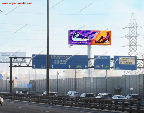 Одним из направлений работы сотрудников РА «Регион Медиа Групп» является подготовка и демонстрация контента на современных видеоэкранах. Он может быть представлен клипом, текстом, анимационным роликом и т. д. В качестве примера нашей работы приведём рекламу на видеоэкранах в Мытищах Ярославское шоссе, 20 км (от МКАД 3,8 км).