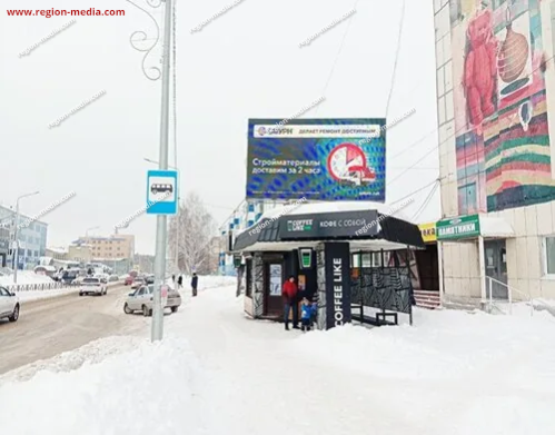 Одним из направлений работы сотрудников РА «Регион Медиа Групп» является подготовка и демонстрация контента на современных видеоэкранах. Он может быть представлен клипом, текстом, анимационным роликом и т. д. В качестве примера нашей работы приведём рекламу на видеоэкранах в Нефтекамске Ленина, 48а (Городской центр культуры).