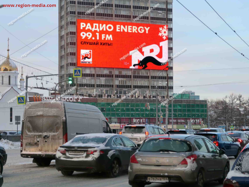 Одним из направлений работы сотрудников РА «Регион Медиа Групп» является подготовка и демонстрация контента на современных видеоэкранах. Он может быть представлен клипом, текстом, анимационным роликом и т. д. В качестве примера нашей работы приведём рекламу на видеоэкранах в Новосибирске Красный пр-т., д.17.