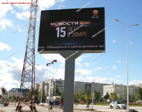 Одним из направлений работы сотрудников РА «Регион Медиа Групп» является подготовка и демонстрация контента на современных видеоэкранах. Он может быть представлен клипом, текстом, анимационным роликом и т. д. В качестве примера нашей работы приведём рекламу на видеоэкранах в Нягани Городская Площадь (3-й мкр.).